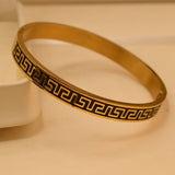 • Name : Elegant Gold Toned Bracelet With Classic Greek Key Pattern For Women